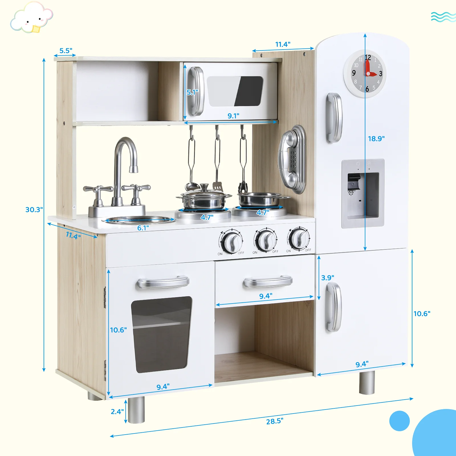 Perfect for toddlers and preschoolers, this stylish kitchen blends seamlessly into playrooms, nurseries, and living spaces.