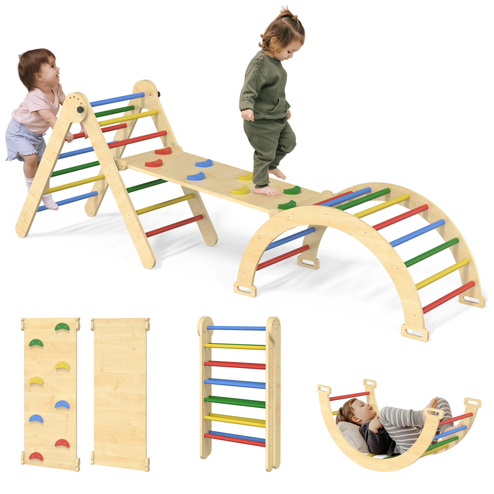 🌟 5-in-1 Wooden Montessori Climbing Set – Indoor Jungle Gym for Toddlers