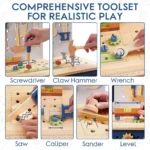 • 🧰 Complete Kids Tool Bench Set – Includes realistic toy tools like hammer, wrench, screwdriver, screws, nuts, and accessories